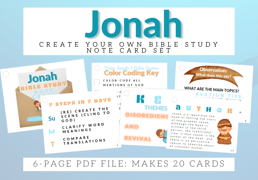 The lessons will guide into each step of an inductive study, step-by-step, specific to the Book of Jonah.