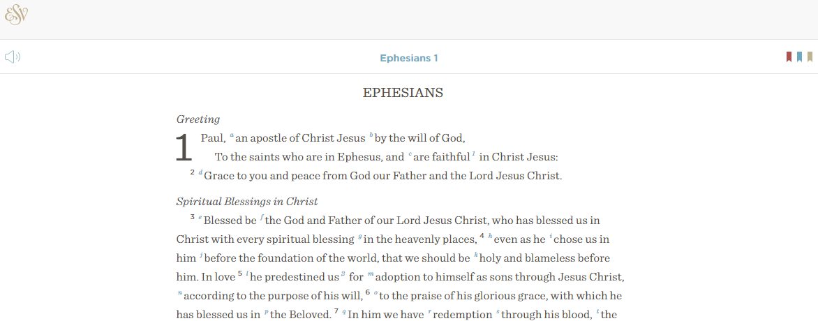 Click here for ESV: Ephesians | ESV.org (look for the megaphone symbol)