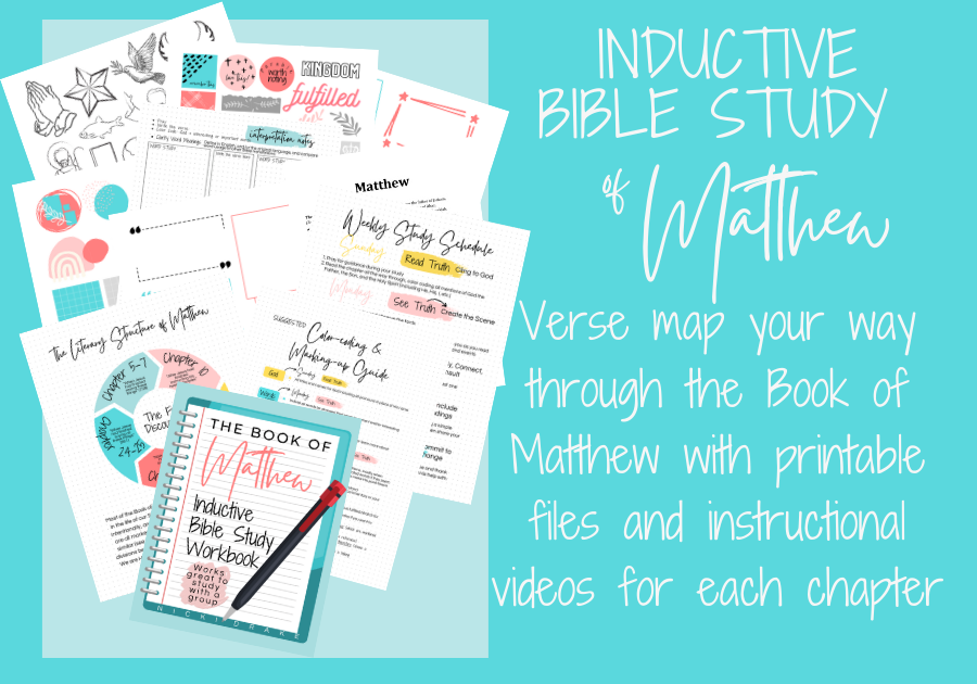 A digital/pdf copy of the Matthew Inductive Bible Study Workbook (300+ pages in full color with an index and page numbers)